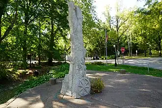 This sculpture, which was incomplete at survey in 1993, was described as "well maintained."[1]