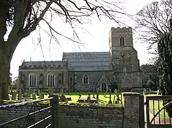 Holy Trinity Parish Church was extensively restored by John Raphael Rodrigues Brandon around 1850. A wax effigy of the upper body of Sarah Hare, including lifelike face and hands, is displayed upright in a mahogany case in the Hare Chapel of the church.[5] She died from blood poisoning in 1744 at the age of 55 and her will stated she wished to be recreated in wax following her death. It is the only funerary effigy of its kind outside Westminster Abbey.[6] The church also has a stained glass window to the memory of Victoria Cross recipient James Adams who was vicar here from 1896 to 1902.[7]
