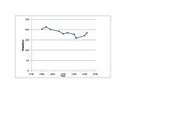 Since 1801, the total population of Stratford St Andrew has gradually declined from 203,[16] to 185 in 2011. 1821 saw the village reach its peak total population with 213 inhabitants. In contrast, 1961 saw the lowest total population for the village, with 158 recorded inhabitants. Despite the decline in total population, the number of houses in the village has increased. In 1831, when the total population was 200, the number of houses was recorded as 24.[17] By 1961, there were 58 households, even though the total population was at its recorded lowest, 158. The most recent census data in 2011, reports that there are now 78 households in the village, 43% of which are owned outright.[18] The reasoning behind the increase in households may be partially explained by the increase in area of Stratford St Andrew. In 1831 the total area was 300 acres, however 60 years later in 1891, the village was 800 acres large.[19] This increase in land would allow more room for houses to be built, thus partially explaining why there is an increase in the recorded number of households.