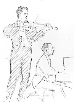 Willy Strecker of B. Schotts Söhne, Stravinsky's music publisher at the time (and also a friend of Dushkin's), asked Stravinsky to compose a concerto for Dushkin. Though Stravinsky was reluctant, citing unfamiliarity with the instrument, Strecker assured the composer that Dushkin would consult about technical matters.[2] Stravinsky noted in his autobiography that Dushkin's availability for such advice was a factor in his undertaking the Violin Concerto.[3] He also sought the opinion of composer and violist Paul Hindemith, who allayed Stravinsky's fears, suggesting that his unfamiliarity with the instrument might help him come up with new possibilities. Stravinsky met with Dushkin at Strecker's residence in Wiesbaden and decided to go ahead.