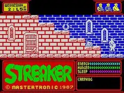 Streaker is an action game published by Mastertronic on their "Bulldog" label in 1987.[1] The game was released for the Amstrad CPC, MSX, ZX Spectrum.