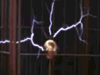 In electromagnetism, a streamer discharge, also known as filamentary discharge, is a type of transient electric discharge which forms at the surface of a conductive electrode carrying a high voltage in an insulating medium such as air. Streamers are luminous writhing branching sparks, plasma channels composed of ionized air molecules, which repeatedly strike out from the electrode into the air.
