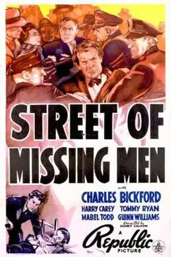 Street of Missing Men is a 1939 American drama film directed by Sidney Salkow and written by Frank Dolan and Leonard Lee. The film stars Charles Bickford, Harry Carey, Tommy Ryan, Guinn "Big Boy" Williams, Ralph Graves and John Gallaudet. The film was released on April 25, 1939, by Republic Pictures.[1][2][3]