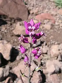 Streptanthus carinatus, the lyreleaf jewelflower,[2] is an annual to biennial plant in the mustard family (Brassicaceae) found in the Arizona Upland of the Sonoran Desert.[3]: 48 Subspecies S. carinatus arizonicus has white to cream colored flowers in its western range, becoming strongly yellow eastward.[3]: 48 Subspecies S. carinatus carinatus has purple flowers.[3]: 48
