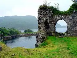 In the aftermath of the Battle of Morar which took place in 1602, the castle was besieged by Kenneth Mackenzie, 1st Lord Mackenzie of Kintail, chief of the Clan Mackenzie, assisted by their allies the Clan Matheson and Andrew Munro of Novar. After the MacDonells surrendered it was demolished and blown up.[4][5] The MacDonells of Glengarry built a new castle further inland called Invergarry Castle.