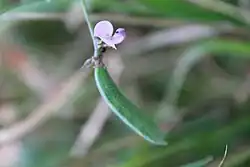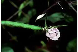 Strophostyles is the only genus within subtribe Phaseolinae (e.g., Phaseolus, Vigna, Lablab) with a native distribution center in the United States.[7] Like other Phaseolinae, the keel petal of its papilionoid flowers are curled inward to the right, although in Strophostyles and a few other genera only the very tip of the keel is coiled.[4]