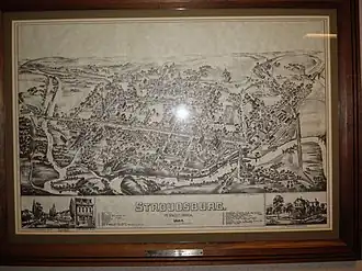 Stroudsburg was laid out by Colonel Jacob Stroud in 1799. Stroud's family founded Stroudsburg in the mid-1700s, and the town was incorporated on February 5, 1815.[3]