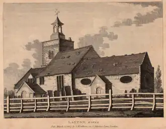 On 14 July 1669 Strype became perpetual curate of Theydon Bois, and a few months afterwards curate and lecturer of Leyton in the same county. He was never instituted or inducted to the living of St Mary's Church, Leyton, but in 1674 he was licensed by the Bishop of London to preach and expound the word of God, and to perform the office of priest and curate while it was vacant, and until his death he received the profits of it. In 1711 he obtained from Archbishop Thomas Tenison the sinecure of West Tarring, Sussex, and he discharged the duties of lecturer at Hackney from 1689 until 1724. In Hackney, he spent his last years with a married granddaughter, the wife of a surgeon, Thomas Harris, dying there at the age of 94. He was buried in the church at Leyton.[3]