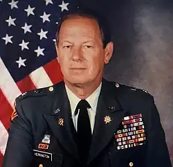 During his service as Director, FCA, Herrington twice deployed to hostile contingencies, first in Panama (Just Cause-1989-90) and second to Saudi Arabia (Desert Storm). (1991). During both contingencies, Herrington constituted a team from FCA and other assets, then established and led sophisticated interrogation projects targeting high-value detainees from among the prisoner population. His account of these interrogation operations, which did not employ torture, brutality, or any of the "enhanced interrogation techniques" that became famous/infamous during the post-9-11 period, can be found in a major address Herrington delivered in 2009.[8] In June 1992, after giving up command of FCA, Herrington established "Task Force Russia: POW/MIA" at the request of the Chief of Staff, Army, which supported an intensive probe into the fates of unaccounted for personnel from WW II, Korea, Cold War shootdowns, and Vietnam POW/MIA.[9] Initially the TF Director, he became its deputy director when the Army determined that the highly charged nature of the POW/MIA hunt merited the assignment of a general officer as its director. From June 1992 to June 1993, Herrington and his TF Russia team reestablished the DoD's credibility in POW/MIA matters, and cemented cordial and respectful ties with the families of unaccounted for servicemembers.[10]