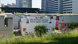 The Olympic village was built in the context of 1972 Summer XX. Olympics in Munich. To build the Men's Olympic Village, five building companies were commissioned. The Studentenwerk München commissioned the Munich architects Günther Eckert and Werner Wirsing with the construction of a student residency that was used as an Olympic village for women during the Olympic Games. The bungalows in the south are still used today as a dormitory and to be held apart from the student city Freimann, were referred to as a student district or student village. A skyscraper and some of the terrace buildings are also used as a dormitory. From spring 2007, the bungalows were partially demolished over a period of three years and rebuilt monument-appropriate, since renovating the existing buildings would not have been cheaper. Of the old bungalows, 12 were original preserved and renovated. The re-opening of the bungalows took place in 2009/2010. By reducing the width of the building, the number of bungalows increased from 800 to 1,052. The total number of residential units in the student district therefore increased to 1953.[1] The name goes back to the fact that the area is located on the Oberwiesenfeld.