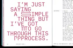 A graphic designer who stutters is Conor Foran. His contributions include the bespoke typeface 'Dysfluent Mono', in which he explores the voice of stutterers and the aesthetics of disfluency.[40] In Dysfluent Mono, the letterforms stretch and repeat to emulate stuttering. Foran uses expressive stretches and repetitions to resist conventional representations of dysfluency, giving stuttering its own identity and sense of pride.[40]