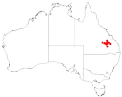 This styphelia grows on shallow sandy soil over sandstone in and near Carnarvon National Park.[2]