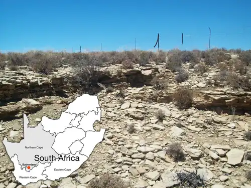 - ^ a b Modesto, S.P.; Rubidge, B.S.; de Klerk, W.J.; Welman, J. (2001). "A dinocephalian therapsid fauna on the Ecca-Beaufort contact in Eastern Cape Province, South Africa". South African Journal of Science. 97: 161–163.