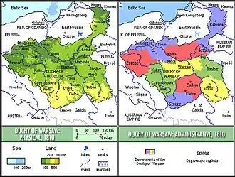 Subdivisions of the Duchy of Warsaw were based on departments that were headed by prefects. The subsidivions were based on the French model following the erection of the Duchy of Warsaw by Napoleon. The departments were in turn subdivided into traditional Polish powiats (counties). Initially six departments were created from the territory annexed from the Kingdom of Prussia. After the 1809 Polish–Austrian War and the Treaty of Schönbrunn the duchy's territory was expanded and their number increased to ten. Each department was named after its capital city.