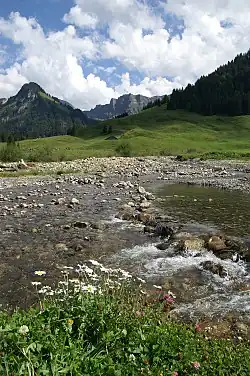 The Subersach originates near the mountain Hählekopf at 1,700 m (AA). Its course is strongly curved and resembles an arc. It merges with the Bregenzer Ach below Egg.