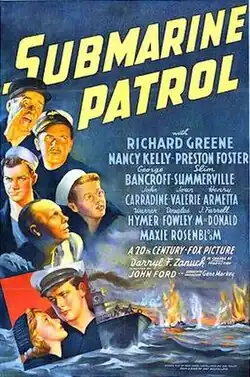 Submarine Patrol is a 1938 film directed by John Ford. The screenplay was by Rian James, Darrell Ware, and Jack Yellen. The film starred Richard Greene, Nancy Kelly and Preston Foster. The supporting cast features George Bancroft, Elisha Cook, Jr., John Carradine, Maxie Rosenbloom, Jack Pennick, Ward Bond[2] and an unbilled Lon Chaney Jr. as a Marine sentry. The movie was partly written by William Faulkner.[3]