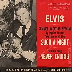"Such a Night" is a popular song from 1953, written by Lincoln Chase and originally recorded by the Drifters. The Drifters featuring Clyde McPhatter recorded the song in November 1953, and Atlantic Records released it in January 1954 as the intended B-side of the McPhatter-penned "Lucille", which was recorded by an earlier version of the group. Despite being banned by some radio stations as too "racy", it reached number 2 on the US Hot R&B/Hip-Hop Songs Chart in 1954.[1]
