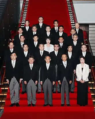 ![]() Prime Minister Yoshihide Suga (front row, centre) with the newly-elected cabinet inside the Kantei, September 16, 2020 | |