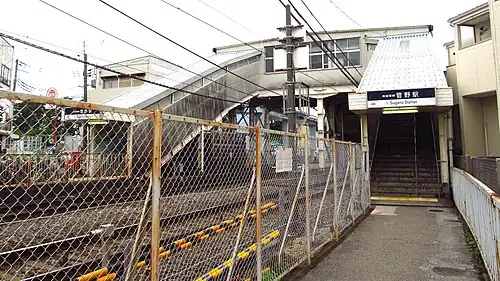 Sugano Station (Japanese: 菅野駅, Hepburn: Sugano-eki) is a railway station on the Keisei Main Line in the city of Ichikawa, Chiba Japan, operated by the private railway operator Keisei Electric Railway.