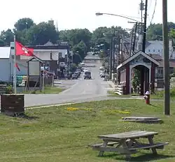 Sugarcreek's historical beginnings were rooted in cheese production. Swiss immigrants arrived in the early 1830s and used the milk from Amish dairy farms to produce their cheese. In the 1950s they created an annual Ohio Swiss Festival; the success of early festivals as an attraction for tourists resulted in local business leaders transforming the town into a Swiss village starting in 1965.[7]: 117–119 By the early 1970s the first tourist-oriented businesses were opening, and the tourism industry in Sugarcreek was centered not only around the Amish but also around a steam engine passenger train operated by the Ohio Central Railroad which ran between Sugarcreek and Baltic until 2004. Since the train stopped running, tourism in Sugarcreek has decreased.[7]: 118–120 Trollinger theorizes that unlike Walnut Creek and Berlin, which support a nostalgia that reassures tourists that what they are nostalgic for still exists in America and is therefore a nostalgia of hope, the Swiss theme of Sugarcreek inspires a nostalgia for something that is forever gone— that is, a historic period in which the United States was a European immigrant based white-majority country— and so does that not reassure many people.[7]: 134–135, 142