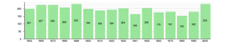 As of 2000, there were 89 private households in the municipality, and an average of 2.6 persons per household.[6] There were 20 households that consist of only one person and 7 households with five or more people. Out of a total of 93 households that answered this question, 21.5% were households made up of just one person. Of the rest of the households, there are 23 married couples without children, 34 married couples with children There were 9 single parents with a child or children. There were 3 households that were made up of unrelated people and 4 households that were made up of some sort of institution or another collective housing.[8]