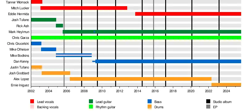 - Mitch Lucker – lead vocals (2003–2012; died 2012)