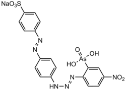 Sulfarsazene is a chemical compound with the formula C18H12AsN6Na3O8S, a metal indicator.[1]
