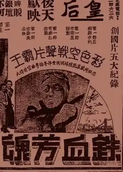 ![]() Poster bearing the title 鐵血芳魂 (written right-to-left as per custom at the time) | |