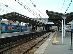 The station consists of two island platforms serving a total of four local tracks, with two additional express tracks on the north side for passing trains. Rapid Service trains stop here but the Special Rapid train service runs on the express tracks, bypassing the station.