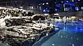 The penguin pool in the atrium is 24 metres (79 ft) wide and 14 metres (46 ft) deep, making it one of the largest indoor penguins pools in Japan. It is home to around 50 Magellanic penguins.[2]
