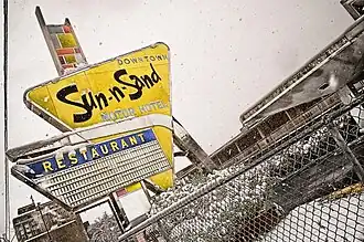 In either 2001 or 2002,[note 2] the motel closed and many of its physical assets were liquidated via auction.[2][8][14] Afterwards, the building was boarded up and became dilapidated.[3][10] Following its closure, the government of Mississippi leased the site for use as a parking lot by state legislators.[2] In 2005, the property was purchased by Lamar Properties,[9] under whose ownership the state government continued to lease the site.[5] That same year, due to concerns regarding the historic preservation of the building, the nonprofit organization Mississippi Heritage Trust added the Sun-n-Sand Motor Hotel to its list of the "Ten Most Endangered Historic Places in Mississippi".[2][6][1]