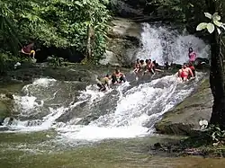 In Hulu Langat, the river descends in a set of waterfalls known as the Gabai Falls (Malay: Air Terjun Sungai Gabai),[1] a popular attraction for the locals, but relatively unknown with tourists. A cemented path leads from the parking to the lower falls. Along the path several shelters have been built. The upper falls can be reached by trails.[3]
