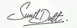 In 1958, Dutt married his Mother India co-star Nargis. Together, they had three children, including actor Sanjay Dutt.[12] In 1984, he joined the Indian National Congress and was elected to Parliament of India for five terms, representing the constituency of Mumbai North West. Dutt served as the Minister for Youth Affairs and Sports in the Manmohan Singh government (2004–2005) and as Sheriff of Mumbai.[13][14]