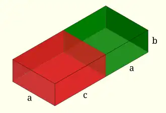 ς = a/b = a+c/a = b/c−a. For b = 1 the boxes have volumes ς3 = ς2 + 1 (red) + ς2 (green).