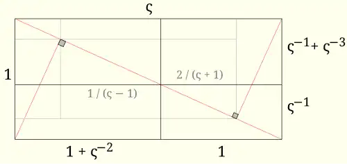 Given a rectangle of height 1, length and diagonal length The triangles on the diagonal have altitudes each perpendicular foot divides the diagonal in ratio .