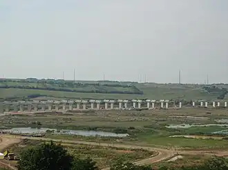 The Suplacu de Barcău Viaduct (Hungarian: Berettyószéplaki völgyhíd) is a future viaduct between Suplacu de Barcău and Borș, Romania. 90% of its course is already built. The remaining part was abandoned by the American company Bechtel, on the route of the future A3 Transylvania Motorway.