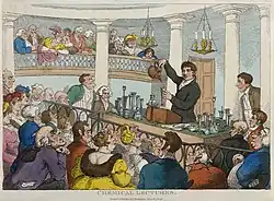 The Institution offered members and visitors lectures on a variety of subjects, the earliest of which included chemistry, mineralogy and natural philosophy, given by employed and visiting scientists, scholars and artists.[1] Samuel Taylor Coleridge, for instance, lectured on belles lettres in 1812–13;[16] William Hazlitt, on the English Poets in 1817[17] and the English Comic Writers in 1818;[18] Goldsworthy Gurney found employment there in 1822, and there devised an improved blowpipe for which he won some renown.[19] Other lecturers included: