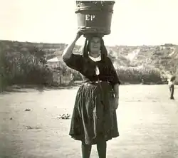 Older and working women generally wear darker, longer skirts without ruffled petticoats. They wear white or dark, long-sleeved shirts, a short veil to cover their hair, and dark, woolen stockings.