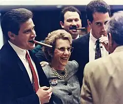 Guber with fellow legislators in 1990 after protesting cigar exemption