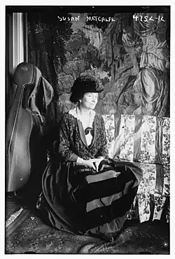 She was born Susan S. Metcalfe in 1878 in Florence, Italy, the daughter of Dr. Frank J. Metcalfe, a Manhattan, New York City physician.[2] Her mother was Helene, a prominent member of New Rochelle, New York society. In later years Dr Metcalfe practised in Florence, Italy, and Susan was born there in 1878 and educated in Conservatories in Italy and France. She also had a brother Louis and sisters Marie and Helen Frances Metcalfe (b. 1880), who married the American socialist architect Herman Kobbé.