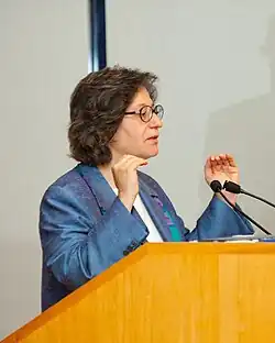 Susan Solomon (born 1956) is an American atmospheric chemist, working for most of her career at the National Oceanic and Atmospheric Administration (NOAA).[1] In 2011, Solomon joined the faculty at the Massachusetts Institute of Technology, where she serves as the Ellen Swallow Richards Professor of Atmospheric Chemistry & Climate Science.[2] Solomon, with her colleagues, was the first to propose the chlorofluorocarbon free radical reaction mechanism that is the cause of the Antarctic ozone hole.[1] Her most recent book, Solvable: how we healed the earth, and how we can do it again (2024) focuses on solutions to current problems, as do books by data scientist Hannah Ritchie, marine biologist, Ayana Elizabeth Johnson and climate scientist Katharine Hayhoe.[3]