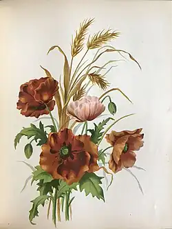 The popular "Flower Songs" series is perhaps the best known of these.[2][3] In some cases, the books' color plates included handwritten poems framed by Skelding's floral designs. A number of the books she produced, such as Songsters of the Branches, were ribbon-bound.[4]