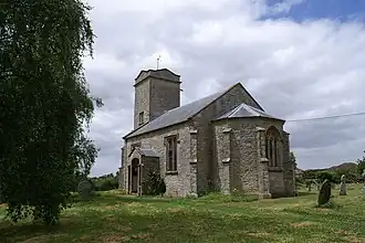 The village is on Sedgemoor on the Somerset Levels, at the foot of the Polden Hills. The old church which dated from the mediaeval period provided a landmark for anyone crossing the moor.[2] Deterioration of the fabric of the church had was reported in the 16th and 17th centuries and services were only held infrequently in the 18th and 19th.[3]