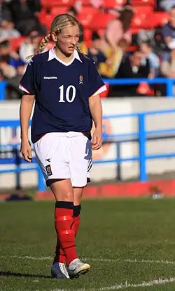 Although primarily a forward, Grant played much of her football for Scotland in midfield.[36] Her 75th international appearance came against Bulgaria in April 2010.[37]