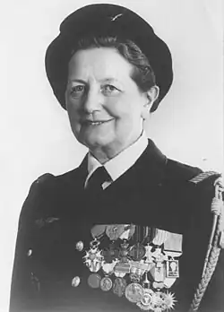 On 1 September 1944, she became a lieutenant and on 1 January 1944 she joined the army's Women's Auxiliary Administration Corps. Rather than take on administrative duties, she found a 4-by-4 vehicle which enabled to ferry French prisoners back from Germany. Between 6 May and 15 August 1945, on her own initiative, she led four convoys of 38 vehicles, repatriating a total of 650 prisoners.[5]