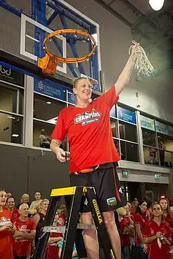 She has represented Australia at the Olympics.[11] She was a member of the Australian senior team that won a silver medal at the 2004 Summer Olympics.[4][6][26] In March 2007, she was named to the national team what would prepare for the 2008 Summer Olympics.[36] In 2008, she participated in the Good Luck Beijing 2008 held in China in the lead up to the Olympics. Her team was joined by national teams from United States, Cuba, Korea, New Zealand and China.[9] She was a member of the 2008 Summer Olympics Australian women's team that won a silver medal at the Olympics.[4][6][29][37][38] In July 2011, she participated in the Olympic qualification competition. She had not played a game with the team prior to this dating back to the Beijing Olympics.[39] She played in the 2012 Summer Olympic qualifying game against the New Zealand women's national basketball team.[40]