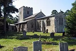 The parish church of St Margaret has a massive west tower and an extension, built in 1980, on the north side. Features of interest include the 15th-century chancel roof, the stained glass of the east window, the Purbeck marble font and a Norman pillar piscina.[3]