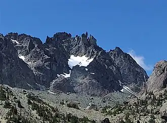 ![]() Sweat Spire centered (Mt. Johnson's summit upper left) | |