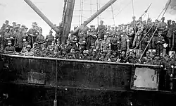 Iron mining in Sweden was not affected by the advent of war, production was maintained at 6–7 million tons throughout the war period.[34] However, the destination of Sweden's exports of iron ore did change. The iron-ore fields of Gällivare, which in pre-war years produced on averaged 1,200,000 tons of iron-ore, most of which was shipped for export from the port of Luleå on the Baltic, could no longer export to the Allied countries and instead all of their produce went to Germany.[4] In 1915 alone, Germany's demand for high-grade Swedish iron ore summed some 4 million tons.[35]