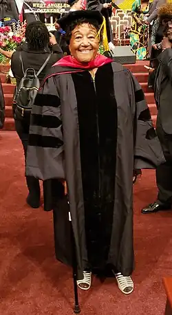 ![]() Harris receiving an honorary Doctor of Humane Letters degree from Next Dimension University, on August 17, 2019 | |